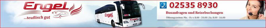 Diese Seite enthält Text der Firma Engel Touristik GmbH, für dessen Inhalt wir (BUS365 / OVZ) keine Gewähr übernehmen. Für den Inhalt des "Über uns" Textes ist die Firma Engel Touristik GmbH verantwortlich. Eine permanente inhaltliche Kontrolle des Textes ist ohne konkrete Anhaltspunkte einer Rechtsverletzung nicht zumutbar. Bei Bekanntwerden von Rechtsverletzungen werden wir die entsprechenden Textpassagen umgehend entfernen.