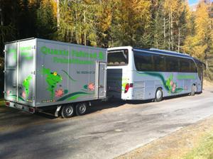 Seit vielen Jahren sind wir bekannt als verlässlicher Partner in Sachen Taxi- und Busfahrten, Transfers und Organisation von Exkursionen und Ausflugsfahrten. Unsere Fahrzeuge, vom Kleinbus bis zum Luxus Reisebus (bis zu 50 oder auch mehr Plätzen), sind für kleine und größere Gruppen die ideale Lösung Ihrer Transportprobleme. Unsere bzw. Ihre Gäste werden sich in unseren neuwertigen, bestens ausgestatteten Reisebussen oder auch Kleinbussen wohl fühlen: So bieten unsere Luxusbusse z.B. Video/DVD, Klimaanlage, Komfortsitze und vieles mehr... Die Verlässlichkeit unseres Betriebes ist bis weit über die Grenzen hinaus bekannt und es würde uns freuen, auch Ihnen auf Ihre Anfrage ein lukratives Angebot zu erstellen. Auch Krankentransporte werden von uns zuverlässig durchgeführt. Ihre Famile Klotz & das Quaxis Taxi und Busreisen Team